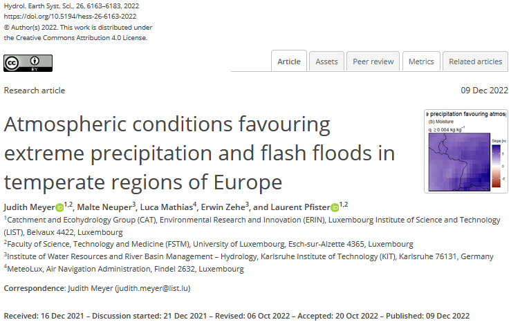 Veröffentlichung einer Studie zu den atmosphärischen Bedingungen, die Sturzfluten in der Großregion begünstigen, in der Fachzeitschrift „Hydrology and Earth System Sciences“